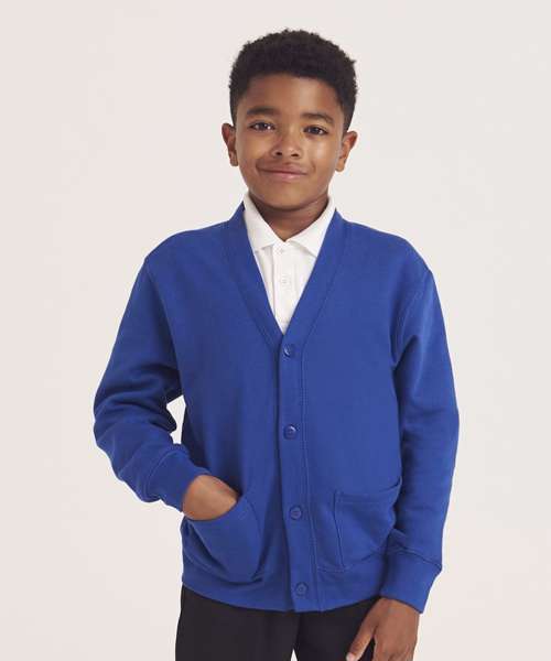 This classic kids cardigan is crafted from soft faced cotton fabric for extra comfort and features 2 smart patch front pockets and self-coloured button fastening.