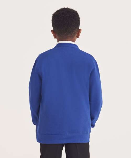 Set-in sleeves, Ribbed cuffs and hemline. 2 patch pockets. Self coloured button fastening. Soft cotton faced fabric creates ideal printing surface. Name label at back neck. Taped neck. Twin needle stitching for durability. Ideal for the classroom and playtime. Worldwide Responsible Accredited Production (WRAP) certified production. WRAP certified. Vegan certified. SEDEX certified.