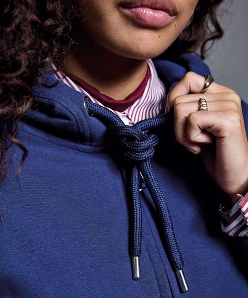 At Anthem we pride ourselves and our styles on three main values: ethically sourced, high quality fabrics and ideal for the imprint market. All these characteristic can been found in our women’s Anthem full-zip hoodie. This incredibly soft-feel style is created with organic cotton, with the addition of recycled polyester in our marl colours. Twin-needle detailing throughout with high quality finishes and a concealed zip make this style perfect for print.