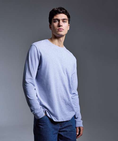 A cool twist on our iconic tee. Long cuffed sleeves counterbalance the ribbed crew neck with a retail fashion fit and soft-feel finish. Fashioned in solid shades of 100% organic cotton, or marls in 60% organic cotton with 40% recycled polyester. All longing to be adorned with your own decoration.