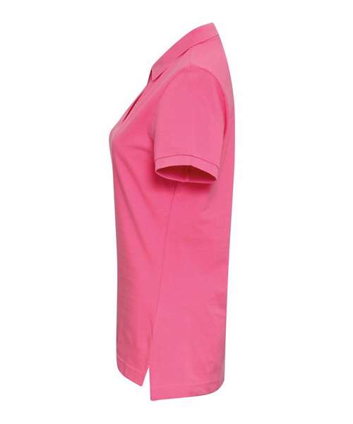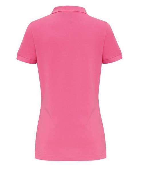 Women's feminine fit polo. 2 button placket. Short sleeves. Side vents. Knitted collar and cuffs. Machine washable. Product contains no branded neck label. Removable Kimble or looped garment tags. Inner seam label holds important product information on one label with a second label containing brand information which can be cut-away. Please note old stock may contain a fixed branded labelc.