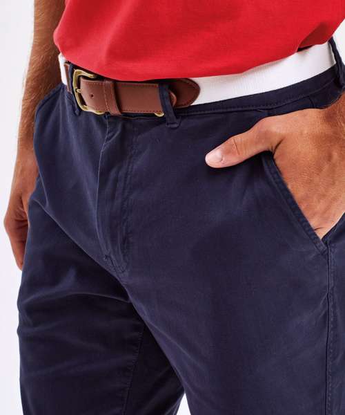 Men’s chino shorts with two swing pockets and two back jet pockets. Zip fly and button fastening to the front. Soft-finish lightweight fabric. Belt loops. Style can be worn rolled up. Product contains no branded neck label. Removable Kimble or looped garment tags. Inner seam label holds important product information on one label with a second label containing brand information which can be cut-away. Please note old stock may contain a fixed branded label.