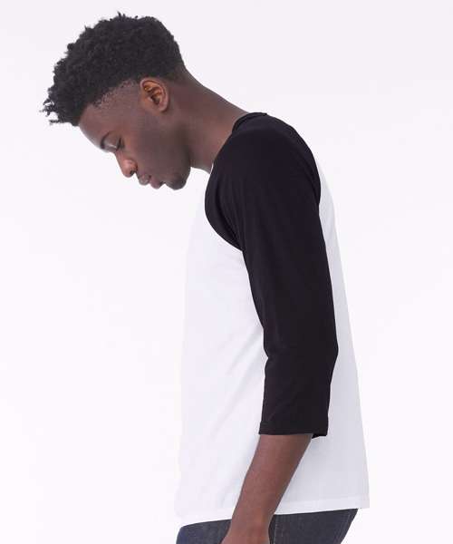 The classic baseball tee with raglan 3/4 sleeves takes on a fresh update with a super soft blends of combed and ringspun cotton, modern fit, 3/4 contrast raglan sleeves and crew neck with contrast trim. This 3/4 sleeve blank baseball tee has a tight-knit surface and is great for printing on. This tee comes in a variety of cool colour combinations.