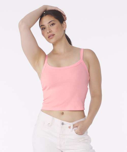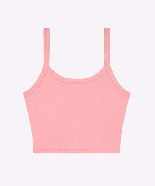 Thick spaghetti straps. Mid-length. 1x1 micro rib. Fitted. Stretch fit. Pre-shrunk. Side-seamed.