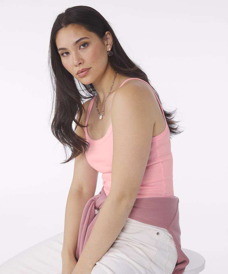 The classic spaghetti strap tank just got upgraded with a 1x1 micro rib fabrication made from the softest airlume combed and ringspun cotton, along with thick straps and fitted stretch for ultra-comfortable wear. This women’s micro rib spaghetti strap tank also features a mid-length hem and scoop neck for 24/7 potential.