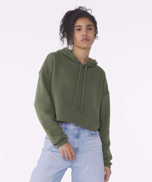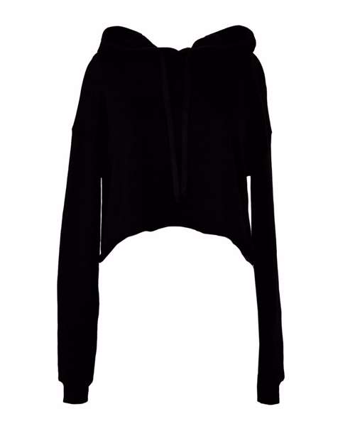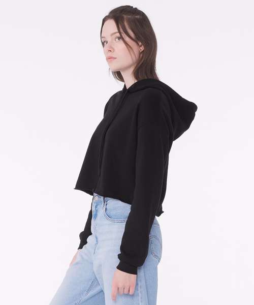 This trendy cropped hoodie is a must have for your fall wardrobe. It's raw edge and dyed-to-match drawstrings make it fashion forward while the polycotton brushed fleece brings an unmatched level of comfort.