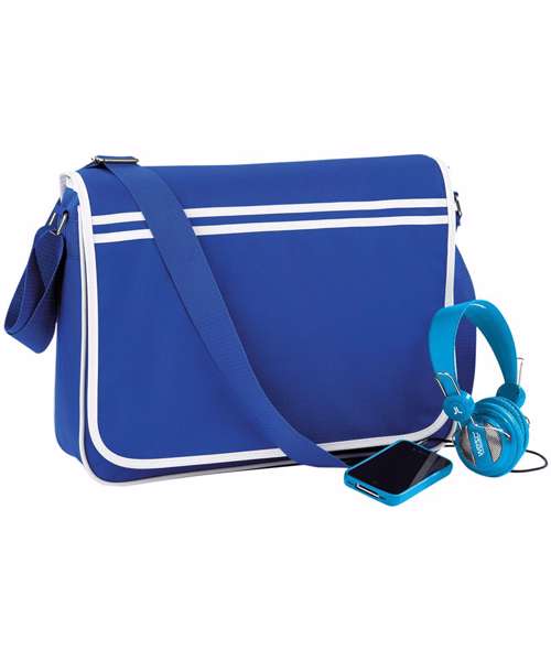 Retro styling. Adjustable shoulder strap. Zippered mesh pocket under flap. Rip-Strip™ closure. Contrast detailing. Reach certified.