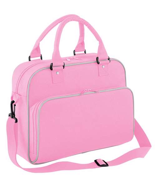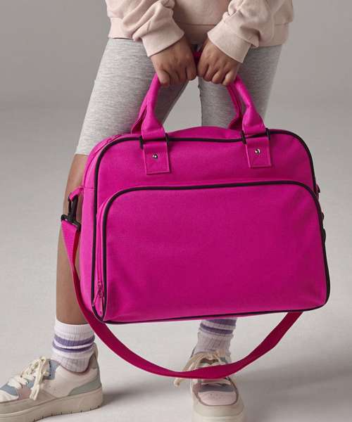 Retro styling. Detachable adjustable shoulder strap. Zippered main compartment. Zippered front pocket. Internal mesh pocket. Internal baseboard. Self-fabric carry handles.