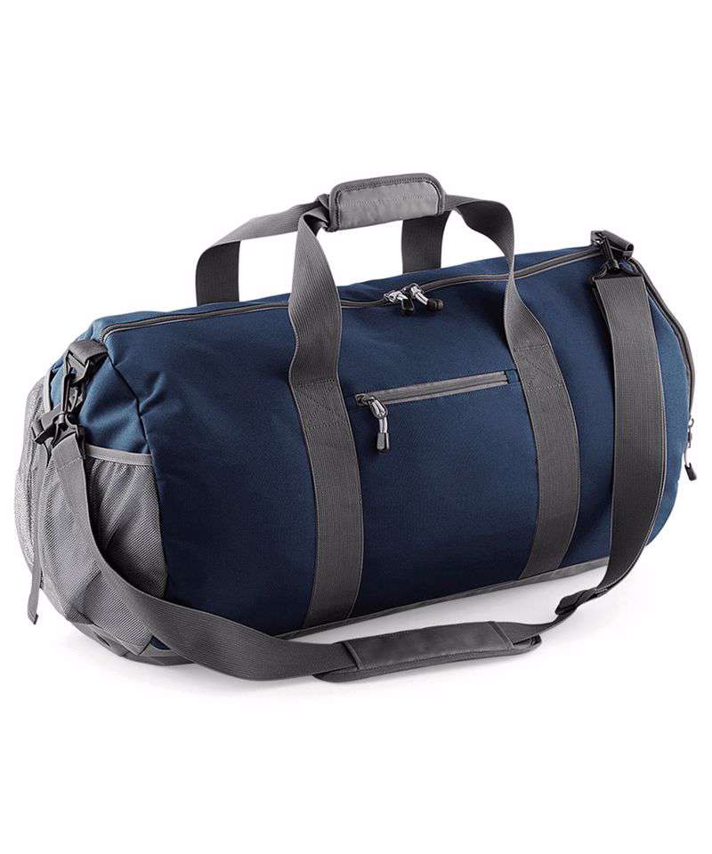 TearAway label for ease of rebranding. Water-resistant fabric. External mesh ball pocket. Shoe tunnel/ wet pocket. Metal ventilation eyelets. Zippered front valuables pocket. Zippered end pocket. Detachable adjustable shoulder strap with pad. Haul handle. Padded hand grip. Reach certified.