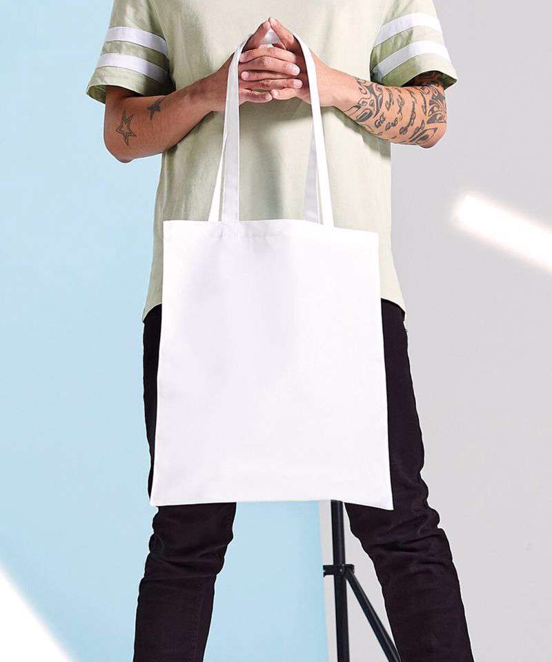 Can be decorated front and rear. Handle length 67cm. TearAway label for ease of rebranding.
