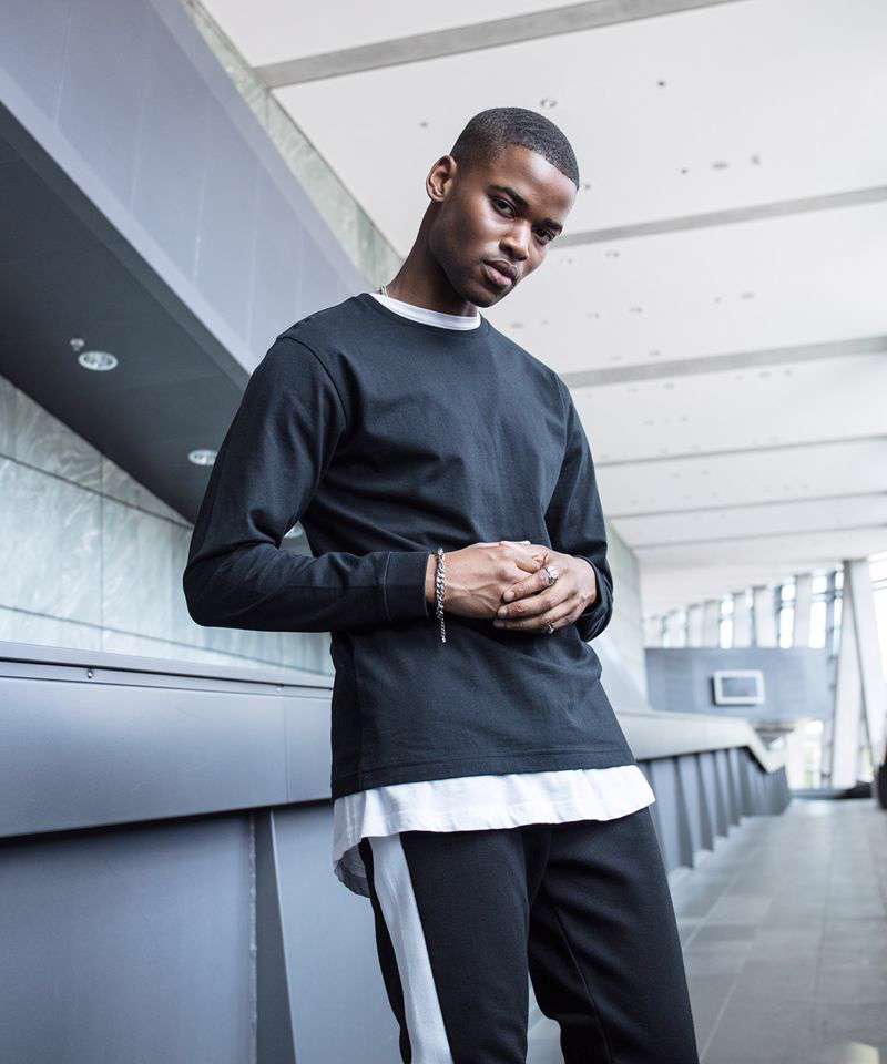 Single Jersey, long cut, set-in sleeves, twin seams cuffs at sleeved and hem.