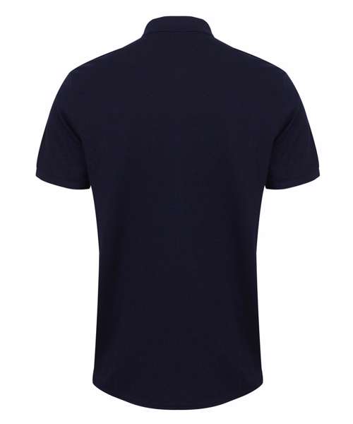 Modern-fit in a lightweight micro-fine piqué with a short point collar, fitted sleeve and cuffs for a modern and fresh new look. Micro-fine piqué is ideal for printing. 2 Button placket, Dyed to match buttons. Contrast herringbone tape in back neck and side vents. Henbury Cut-out back neck brand label.
