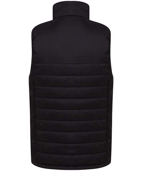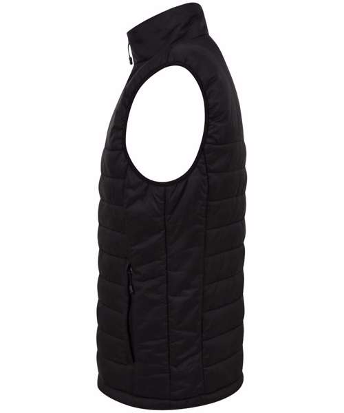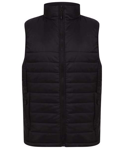 100% nylon pongee in a water-repellent fabric. Quilted polyester padding for puffer effect. Smooth area on chest and across back for decoration. Plain side panels. Full-length front zipper and 2 hidden side pocket with non slip pullers. 2 internal deep pockets. Binding on armhole. Henbury cut out label.