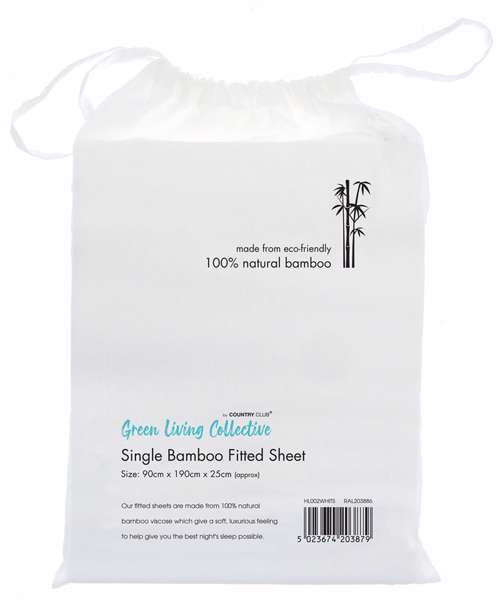 White fitted sheet made from 100% bamboo viscose. Single (90 x 190cm with 25cm box) Double (138 x 191cm with 25cm box) King (152 x 200cm with 25cm box).