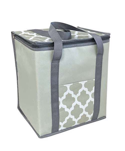 Moroccan-design cool bag with 28-litre capacity. Insulated foil inner. Tough exterior fabric. Fabric carrying straps with zip fastening.