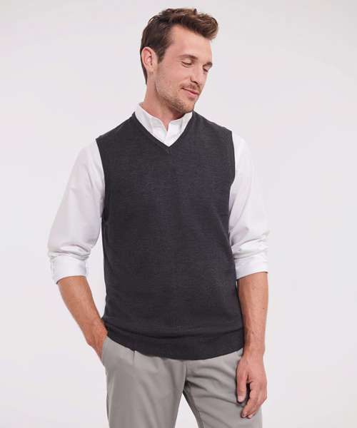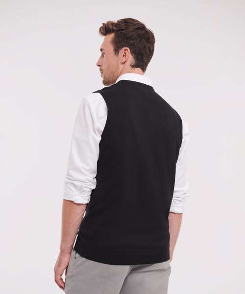 Sleeveless version of the classic, easycare V-neck sweater - for stylish layering over shirt or t-shirt.