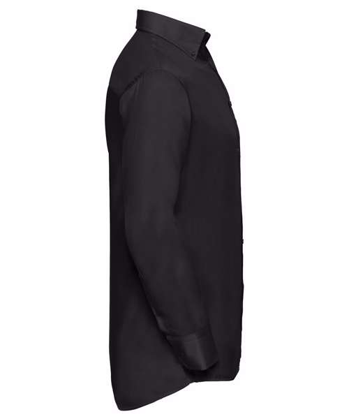 Made using the newest technologies of non-iron fabric that stays wrinkle free and keeps the wearer looking and feeling smart all day long. The classic gents shirt cut with semi-cut away button down collar and chest pocket. Contemporary size mitred cuff, adjustable with two buttons and with option for cuff links. Back yoke with two pleats. Rounded hem.