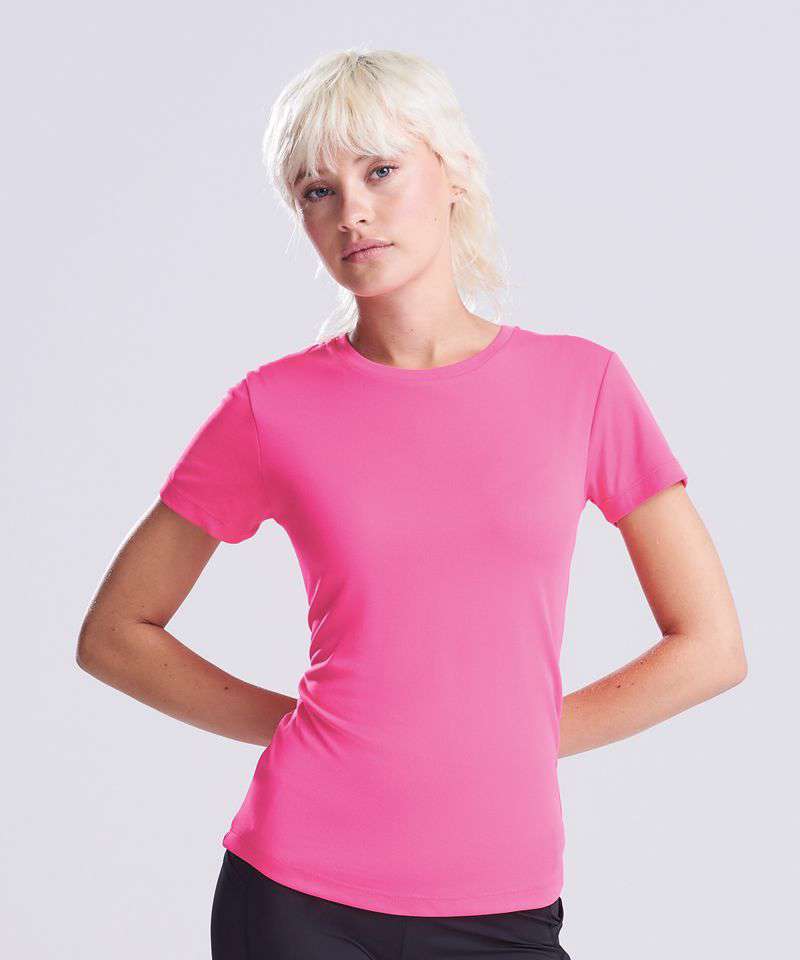 AWDis’ own Neoteric™ textured fabric with inherent wickability and quick drying properties. Self-fabric crew neck. Set in sleeve design. Girlie fit. Curved back hem for added comfort. Fabric collar and cuffs. Self-fabric taped back neck. Simple tear off label makes it perfect for rebranding. UPF 30+ UV protection.