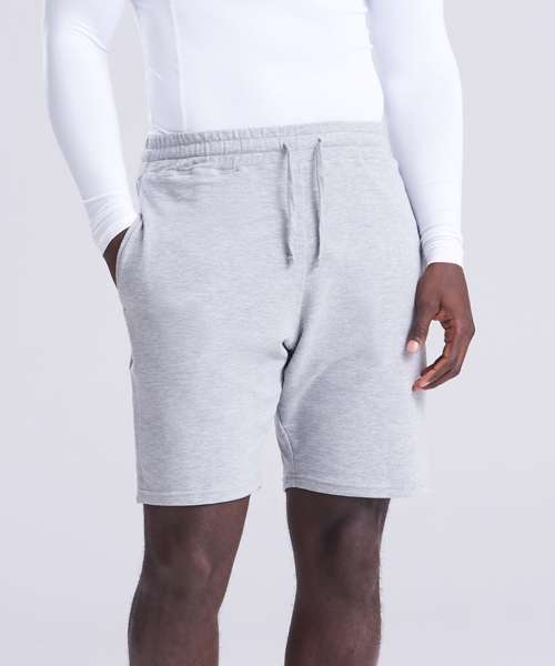 Sports jog short made from polyester/ cotton/elastane blended stretch fabric. Elasticated waistband with drawcords for fit and pockets at side seams.