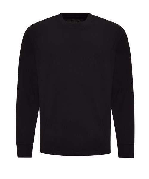 Oversized fit. Side seams. Long sleeves with cuffs. Ribbed crew neck style with taped neck. Set-in sleeve. Size label only, for easy rebranding – colour-coded black for unisex. Combed ringspun cotton for ultra-comfort. Excellent surface for print or embroidery. Twin-needle stitching detail.