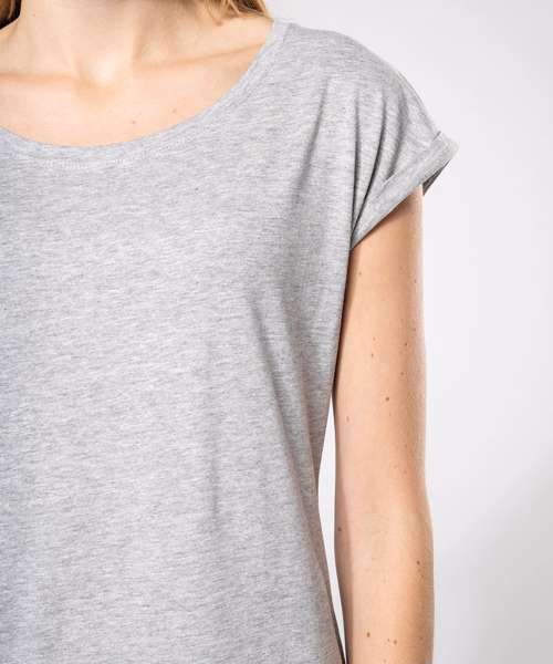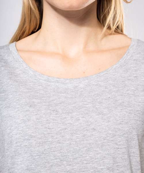 Feel comfy wearing this long ladies t-shirt.100% combed cotton jersey (Light Grey Heather : 90% cotton / 10% viscose). Comfort fit. Wide neck with neck tape and turn-up armhole finish. Curved hem with twin needle finishing. No brand label at neck, only size tag for easy relabelling. Certified STANDARD 100 by OEKO-TEX®N° CQ1007/7, IFTH.