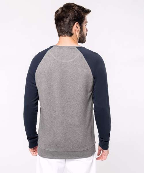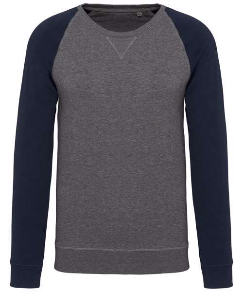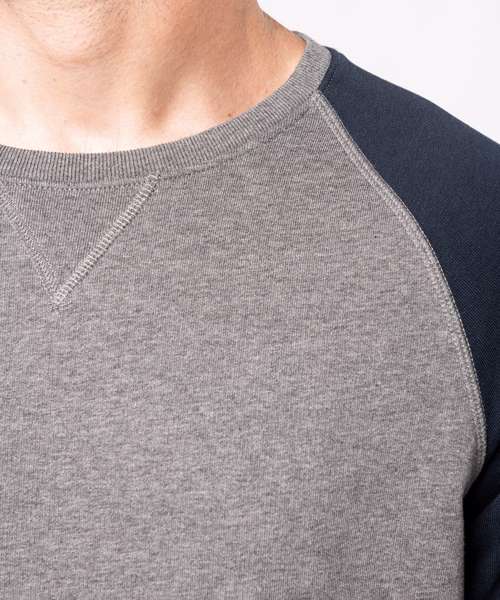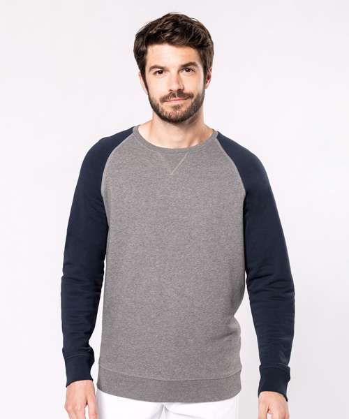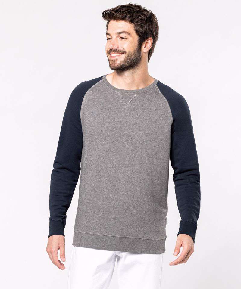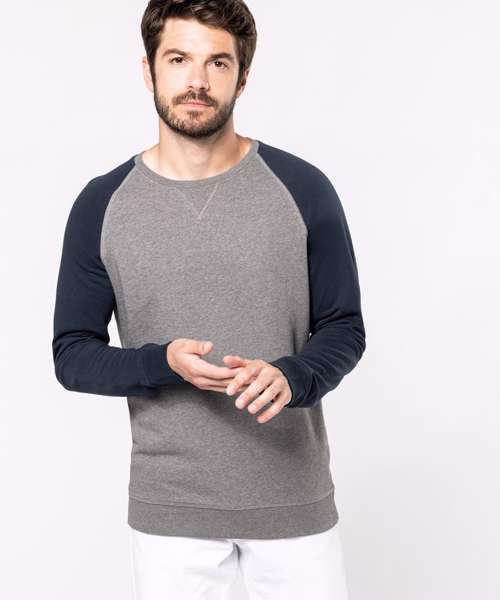 KB491: Men's two-tone organic crew neck raglan sleeve sweatshirt
