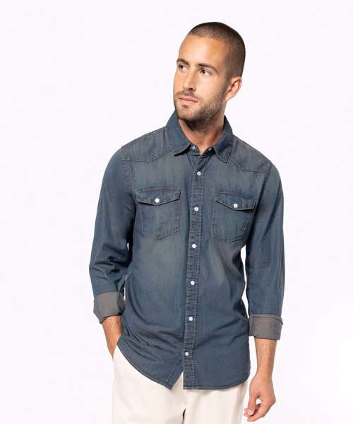 KB519: Men's long-sleeved denim shirt