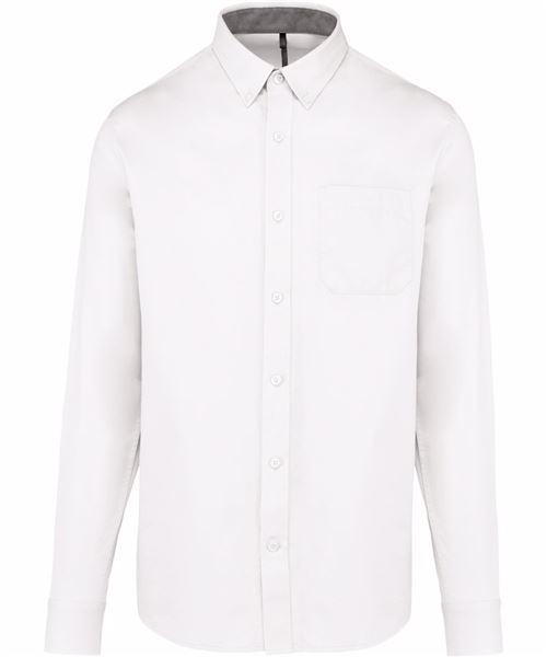 Button-down collar. Matching buttons. Chest pocket on left side. Contrast Oxford silver inner collar stand and cuffs. Back with 2 side pleats and lined yoke. Felled seam finish. BSCI certified. Oeko-Tex certified. SEDEX certified. WRAP certified.
