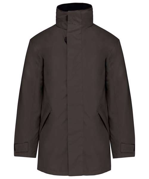 100% polyester Oxford outer - quilted polyester padding and lining. Zip fastening with tear release fastening and concealed press studs. 2 zipped outer pockets. 2 inside pockets (1 mobile phone pocket). Concealed hood. Fleece-lined collar. Zip access for decoration.