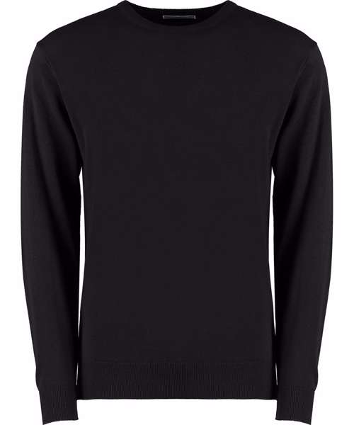 12 gauge knit. Fashioning marks to front neck, sleeve head and armhole. 1x1 ribbed crew neck, cuff and welt. Kustom Kit® woven back neck label.