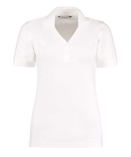 A relaxed slim fit stretch polo made from a blend of cotton and Lycra® with a feminine v-neck and placket. Available in a great range of bright colourways.