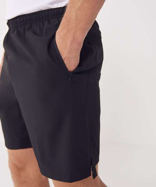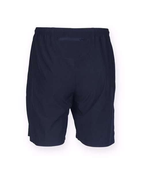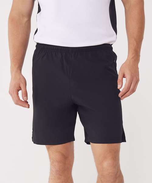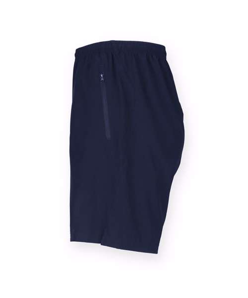 4 way stretch fabric shorts, fully elasticated waistband with inner drawcord, zip up pocket, DTM crotch panel, unlined.