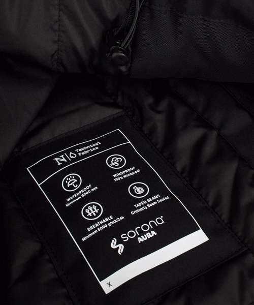 Outer fabric: 100% Recycled polyester with PU coating. Lining: 100% Recycled polyester. Padding: 100% Polyester: Sorona® Aura (AURA insulation is made from 30% Bio-based material)