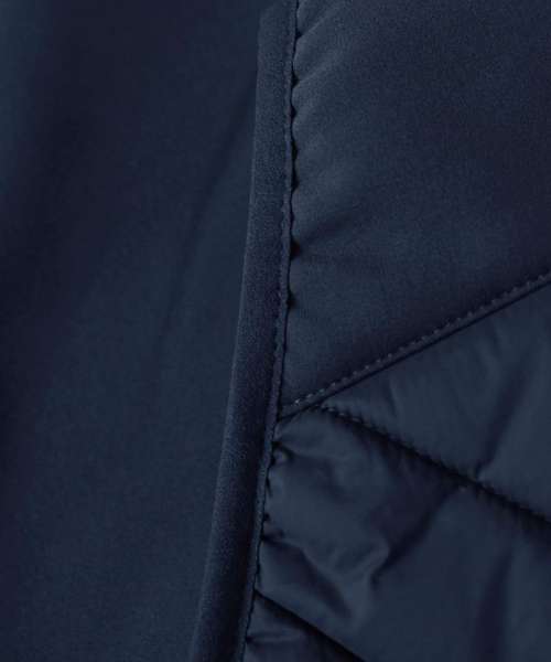 Outer fabric: 100% Recycled nylon - 95% Recycled softshell, 5% Elastane. Padding: 100% Polyester; Sorona® Aura. (AURA insulation is made from 30% Bio-based material)
