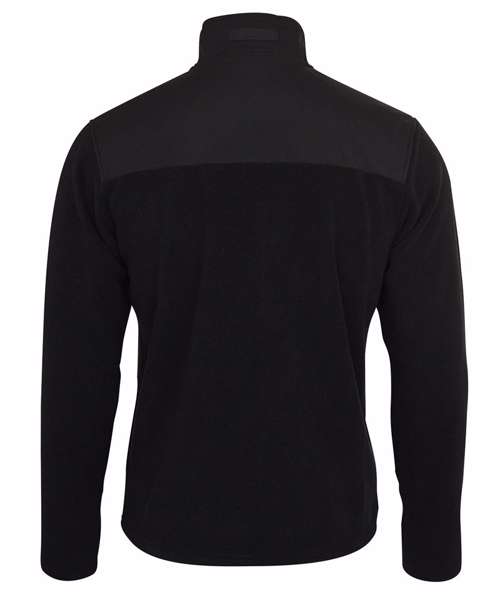 Fleece: 100% Recycled polyester. Contrast fabric: 100% Polyester (yoke, pockets and outside collar)