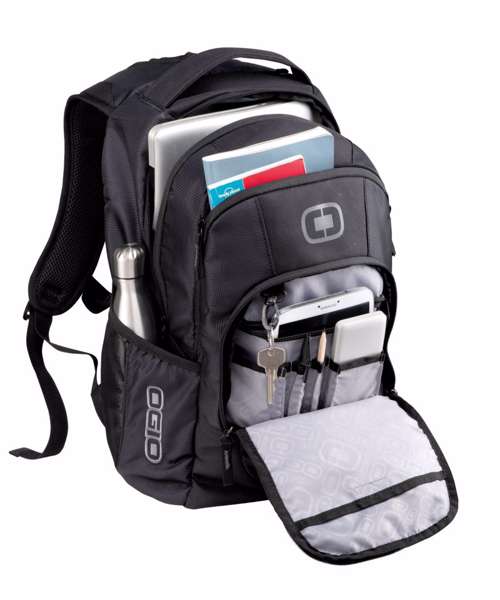 15.6" laptop backpack made from durable material with dedicated padded tablet sleeve. Features a spacious main and large secondary compartment, front compartment with organisational panel, zipped pocket and key fob. Padded back with moisture-wicking air mesh and padded shoulder straps. 600D of Polyester Dobby.