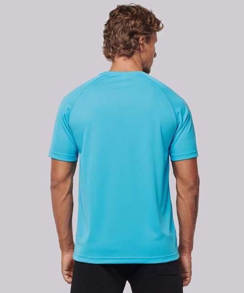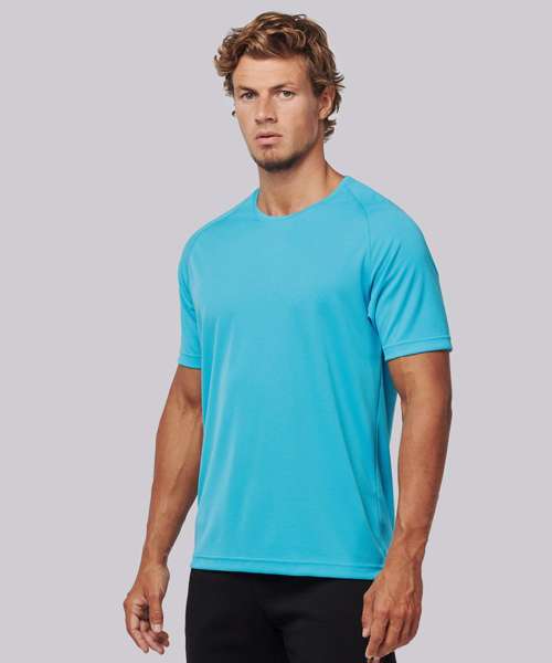 100% polyester. Quick-drying lightweight fabric. Crew neck with neck tape. Raglan sleeves with with topstitch detailing. Twin needle finishing at the neck, cuffs and hem. Certified STANDARD 100 by OEKO-TEX® N° CQ 1007/7, IFTH.