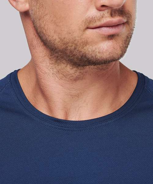 100% Polyester. Quick drying Lightweight fabric. Crew neck. Taped neck. Raglan sleeves with cover stitch. Twin needle finishing. BSCI certified. Oeko-Tex certified.
