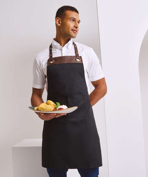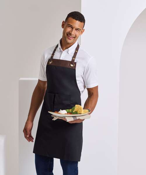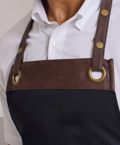 This apron combines polyester-cotton with soft faux leather for a really cool contemporary design.