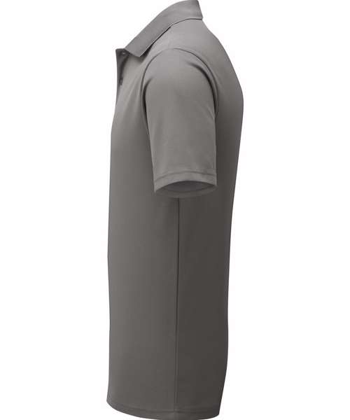 Men’s short sleeve polo shirt made from certified recycled polyester with production method that has a reduced environmental impact for creating spun dyed yarns. Moisture management properties to the fabric guarantee a breathable and wicking performance, so the wearer stays fresh and cool. Styled with a ribbed collar, three-button placket and side vents.