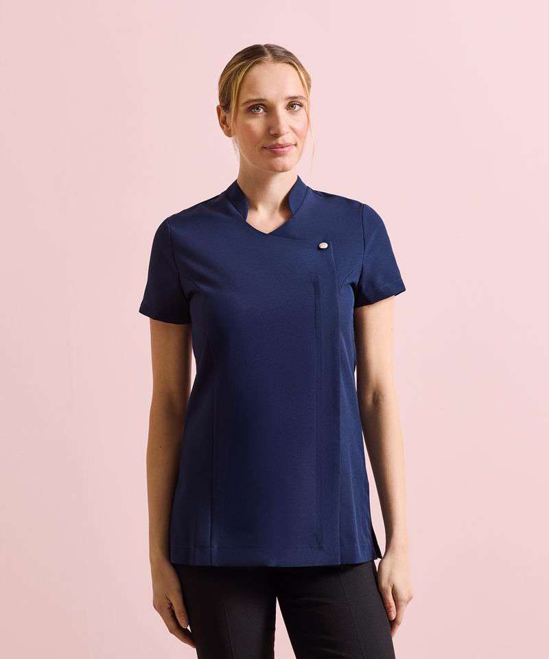 Premier's 'Blossom' beauty and spa tunic has a feature button front fastening with a concealed zip. The short sleeves and princess seams along with side vents and a black pleat make for a practical garment that is easy to work in whilst retaining style.