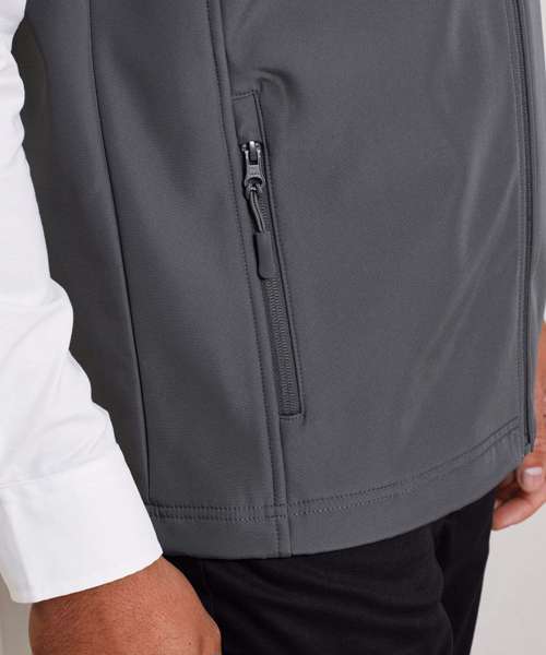 A men’s two-layer softshell gilet carrying Premier’s Windchecker®️ trademark for wind and water resistance through the fabric. Made with 100% certified recycled polyester with a bonded fleece inner layer, this zip-through softshell bodywarmer features handy zipped side pockets and an elasticated drawcord hem for fit. A great versatile outer layer for casual and corporate dressing for men.