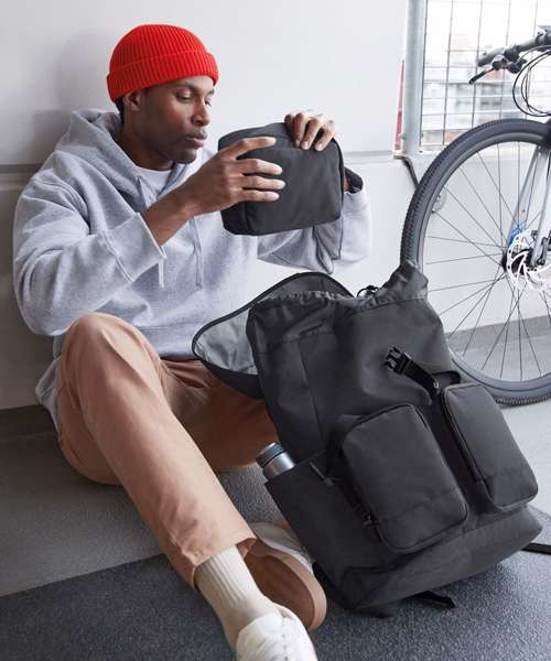 Contains 100% certified recycled polyester. Water-repellent fabric. Zipped front pocket. Internal zipped pocket. Two internal slip pockets. Internal mesh pockets. PU, self-coloured zip pulls. TearAway label for ease of rebranding.