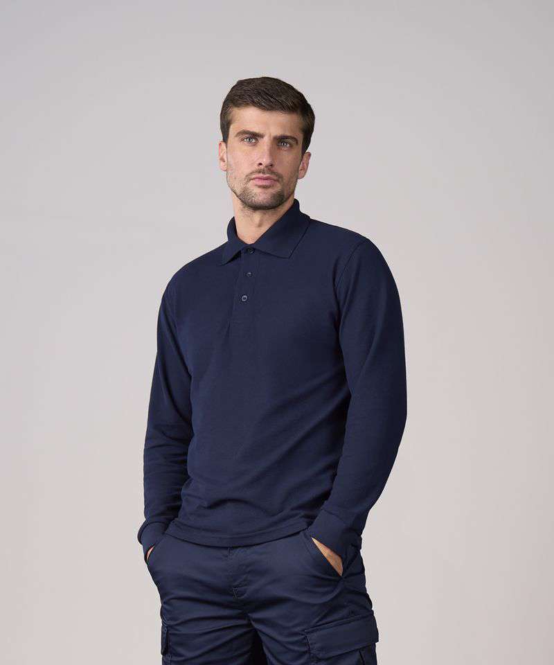 For the cooler months, the Pro long sleeve polo is an essential, with the same fabric and fit as the best selling RX101 Pro polo, this long sleeve style completes your workwear offering. With a 3-button placket, and long sleeves with a cuffed hem.