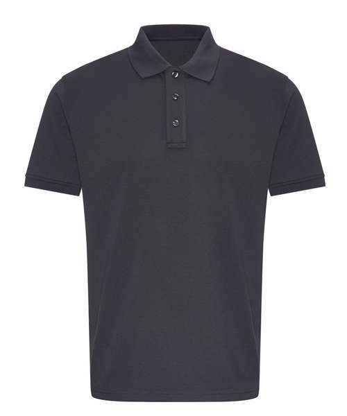Standard fit. Permanent wicking finish. Antibacterial finish. Recycled polyester. Ribbed collar and cuffs. Twin-needle stitching details. Three-button placket with one spare button.