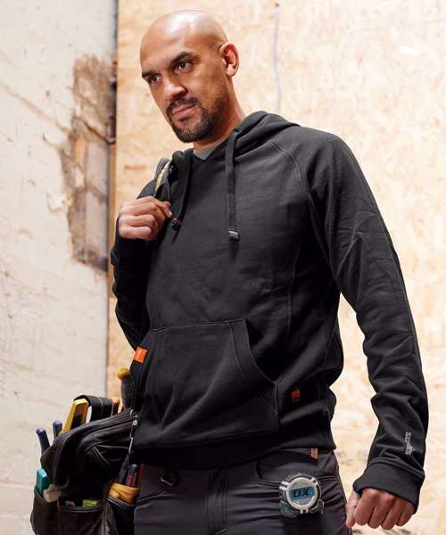 Naturally breathable and sustainably-sourced cotton-rich fabric. Hidden zipped pocket for secure storage. Raglan sleeve design ensures flexibility and freedom of movement. Features adjustable hood, ribbed hem and ribbed cuffs with thumb grips. Certified Better Cotton™ and Sedex.