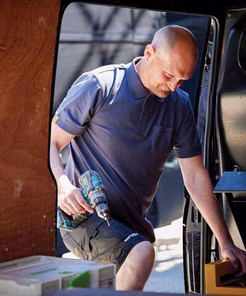 Naturally breathable and sustainably-sourced cotton-rich fabric. Longer length to prevent riding up when working. Ribbed collar with button placket. Blank chest for printing or embroidery. Certified Better Cotton™ and SA8000 factory audit.
