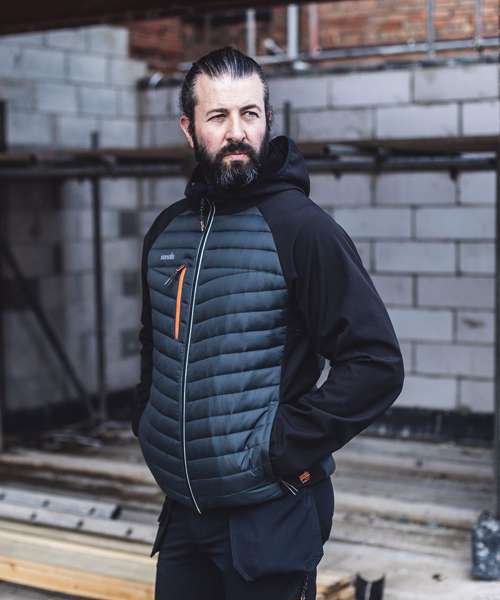 Lightweight, padded softshell jacket made from hard-wearing nylon fabric. Insatherm® padding. Flexible softshell sleeves and side panels. Elasticated hood, hem and cuffs keep wind out and warmth in.