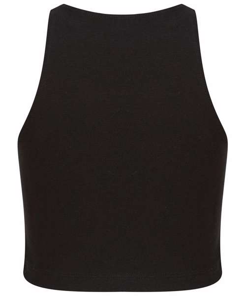 Sleeveless cropped top, with a fitted neckline that’s ultra-flattering on the shoulders. High fashion, high impact. Tear-out label for easy rebranding.