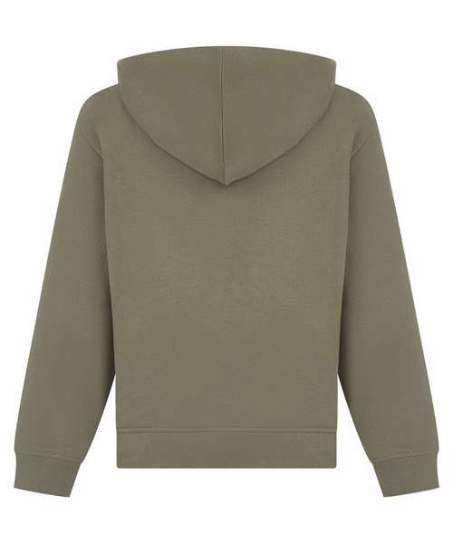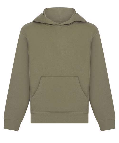 Unisex, relaxed-fit hoodie. Set-in sleeves, dropped shoulders. Droptail hem – curved high front, low back. Ribbed hem cuffs. Single Jersey back neck tape and hood lining. Kangaroo pocket. Tonal topstitching detail. Brand-free, for easy rebranding. Contains recycled cotton and recycled polyester.